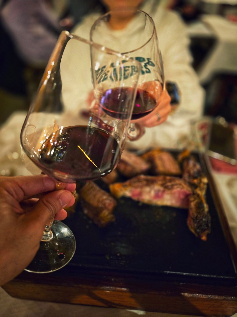 티본스테이크에 와인도 먹었는데,